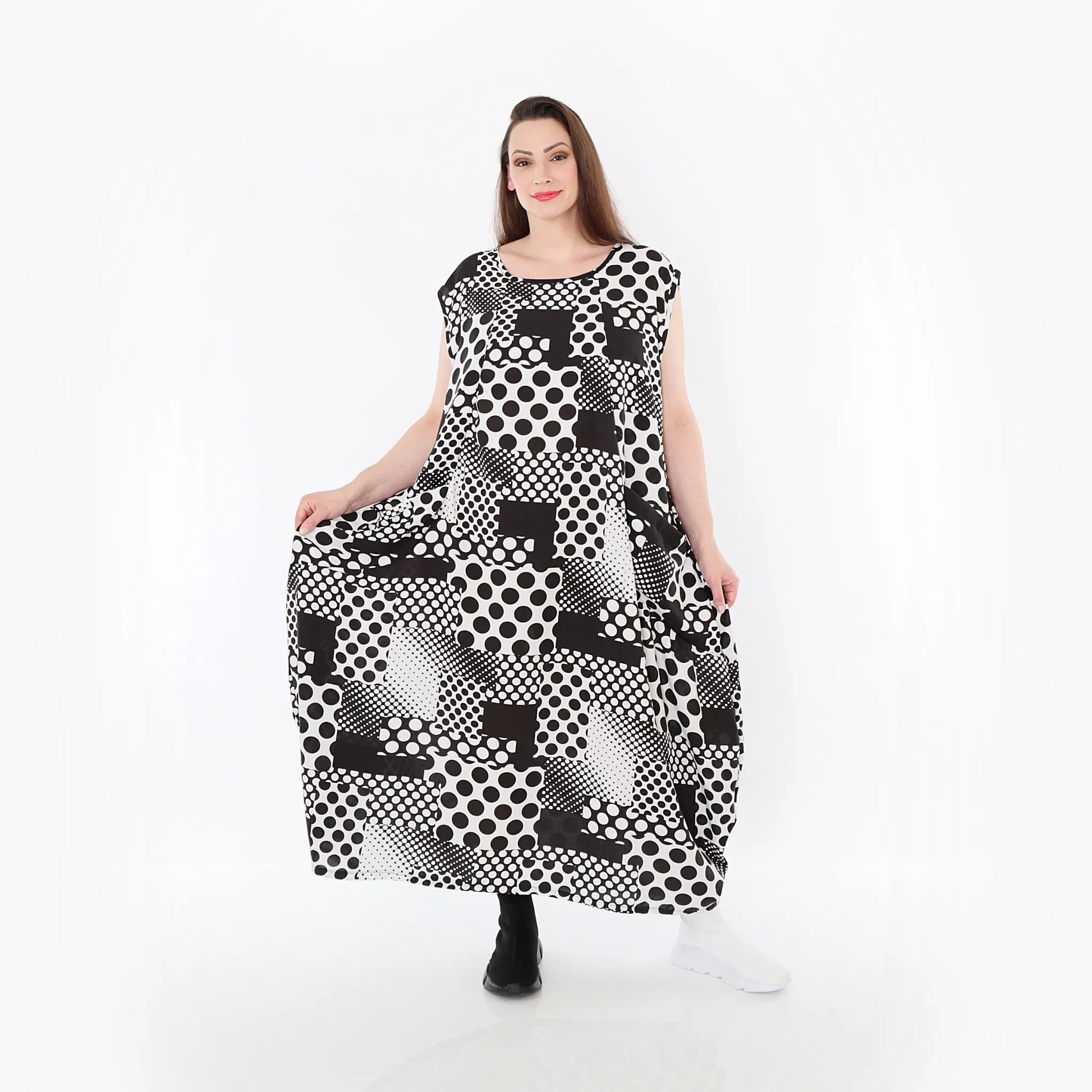 AKH Fashion 4491 Kleid, Schwarz-Weiß