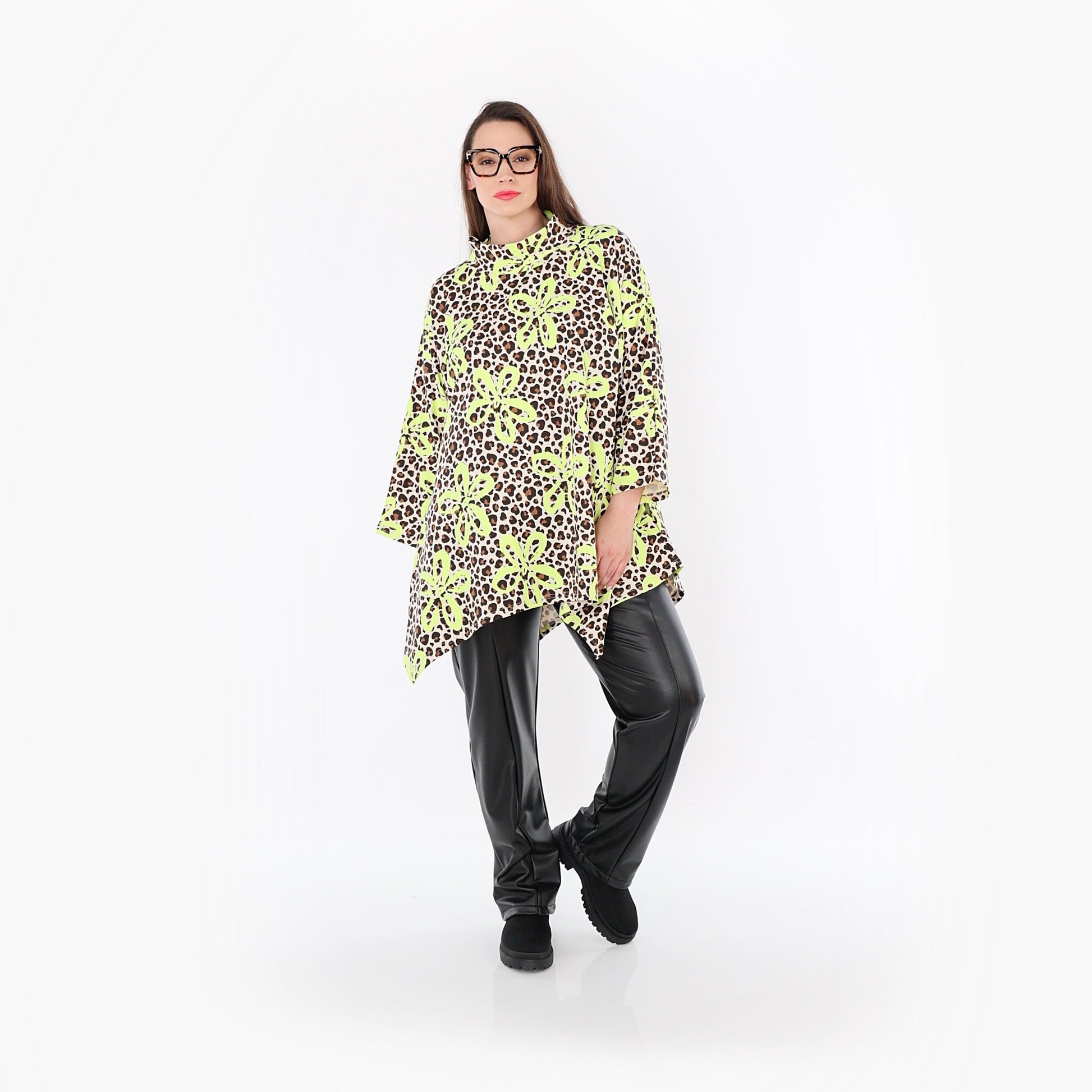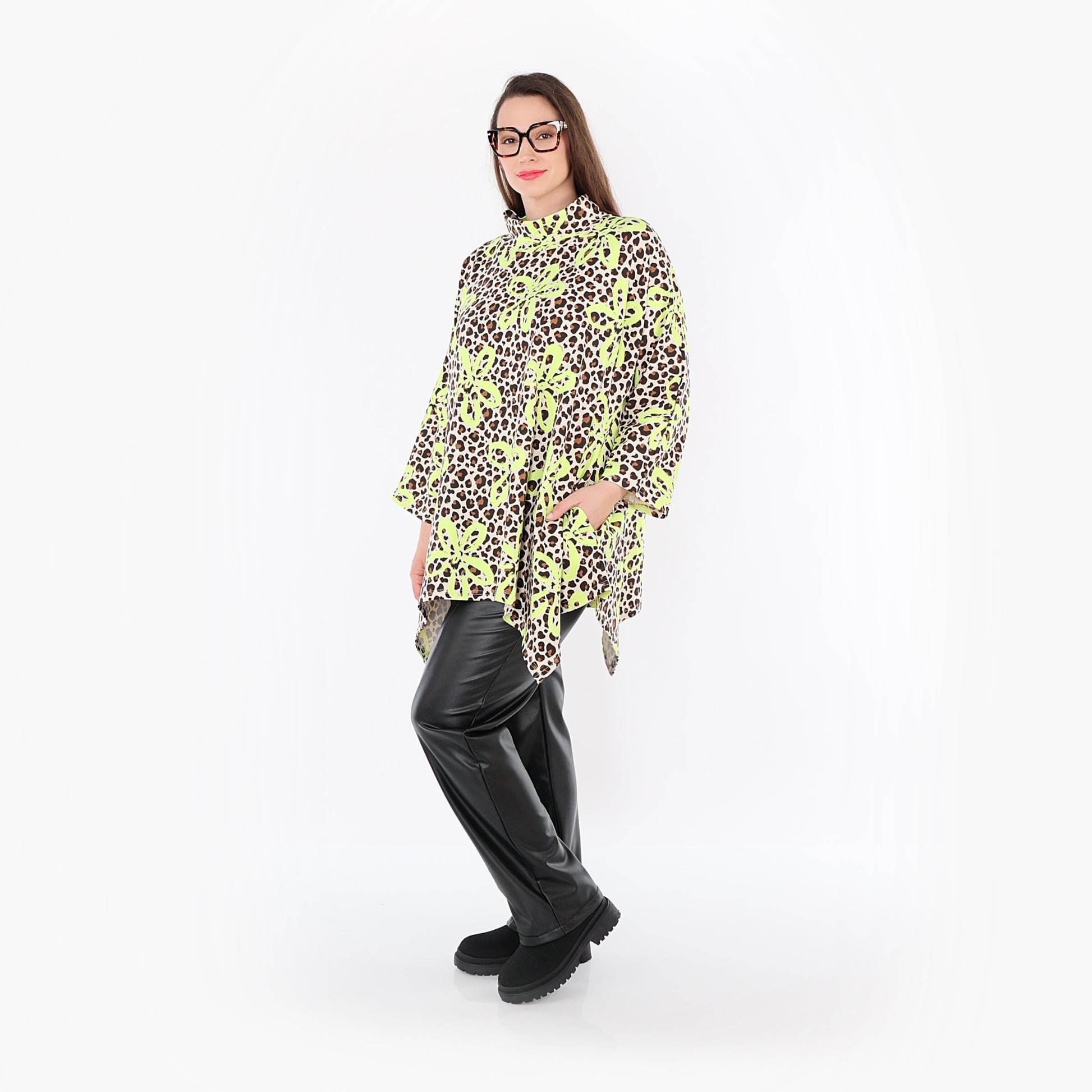 AKH Fashion 7123 Big Shirt, Beige-Braun-Neongrün