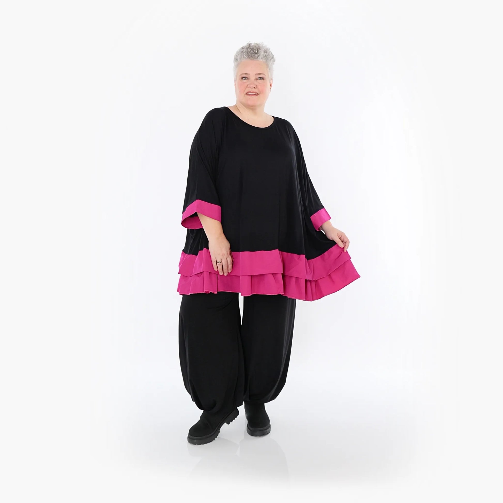 AKH Fashion 7103 Big Shirt, Schwarz-Fuchsia