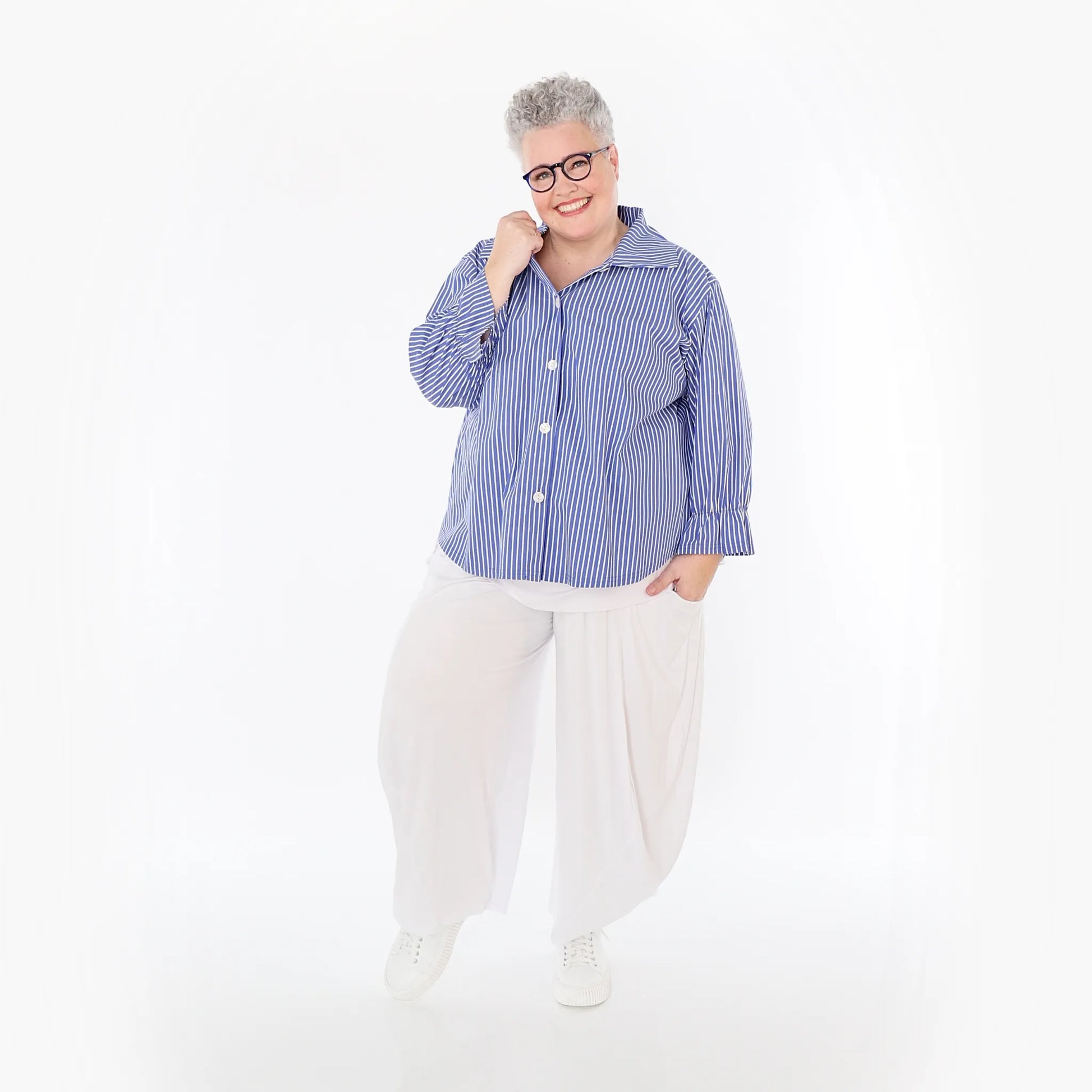 AKH Fashion Bluse, Einheitsgröße, passend bis EU-Größe 52, wird gern auch von Kundinnen mit kleineren Größen oversized bzw. locker, leger getragen.