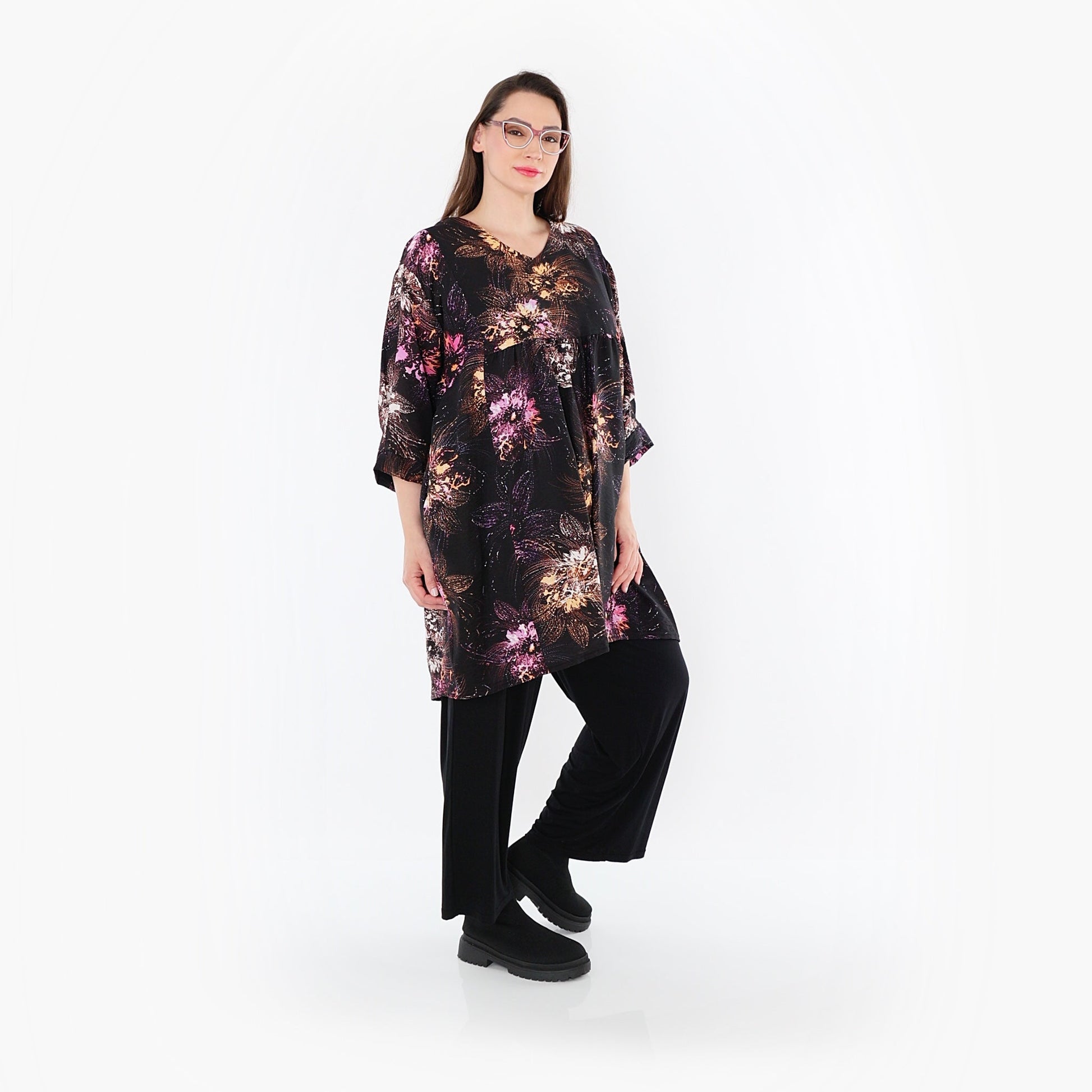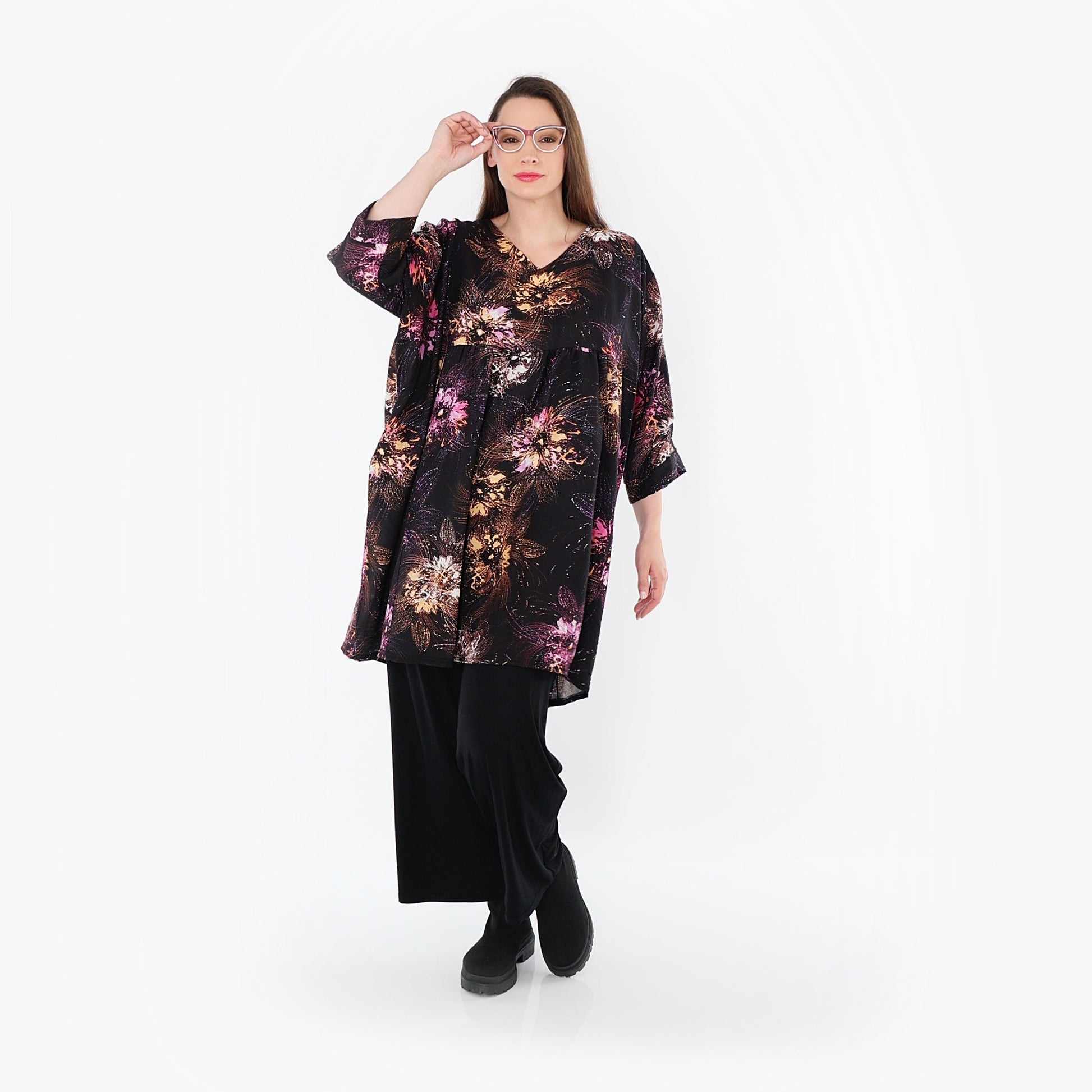 AKH Fashion 7091 Big Shirt, Schwarz-Fuchsia-Multi