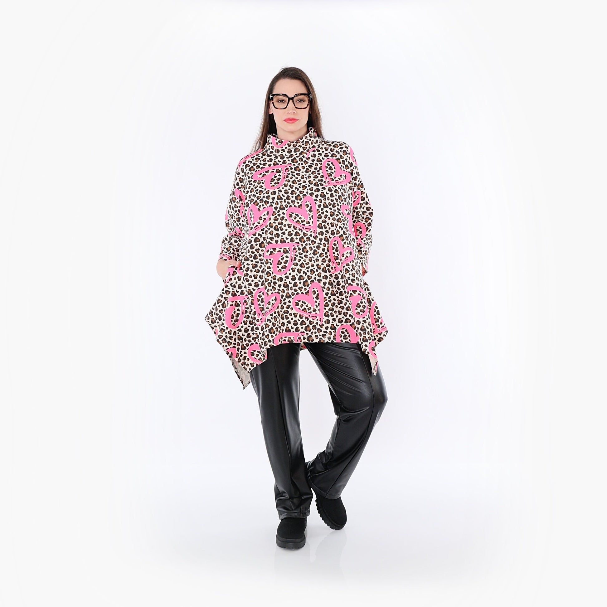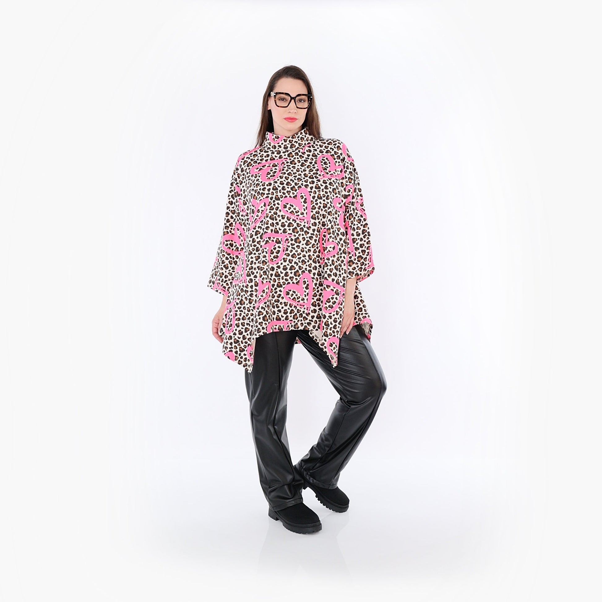 AKH Fashion 7123 Big Shirt, Beige-Braun-Fuchsia