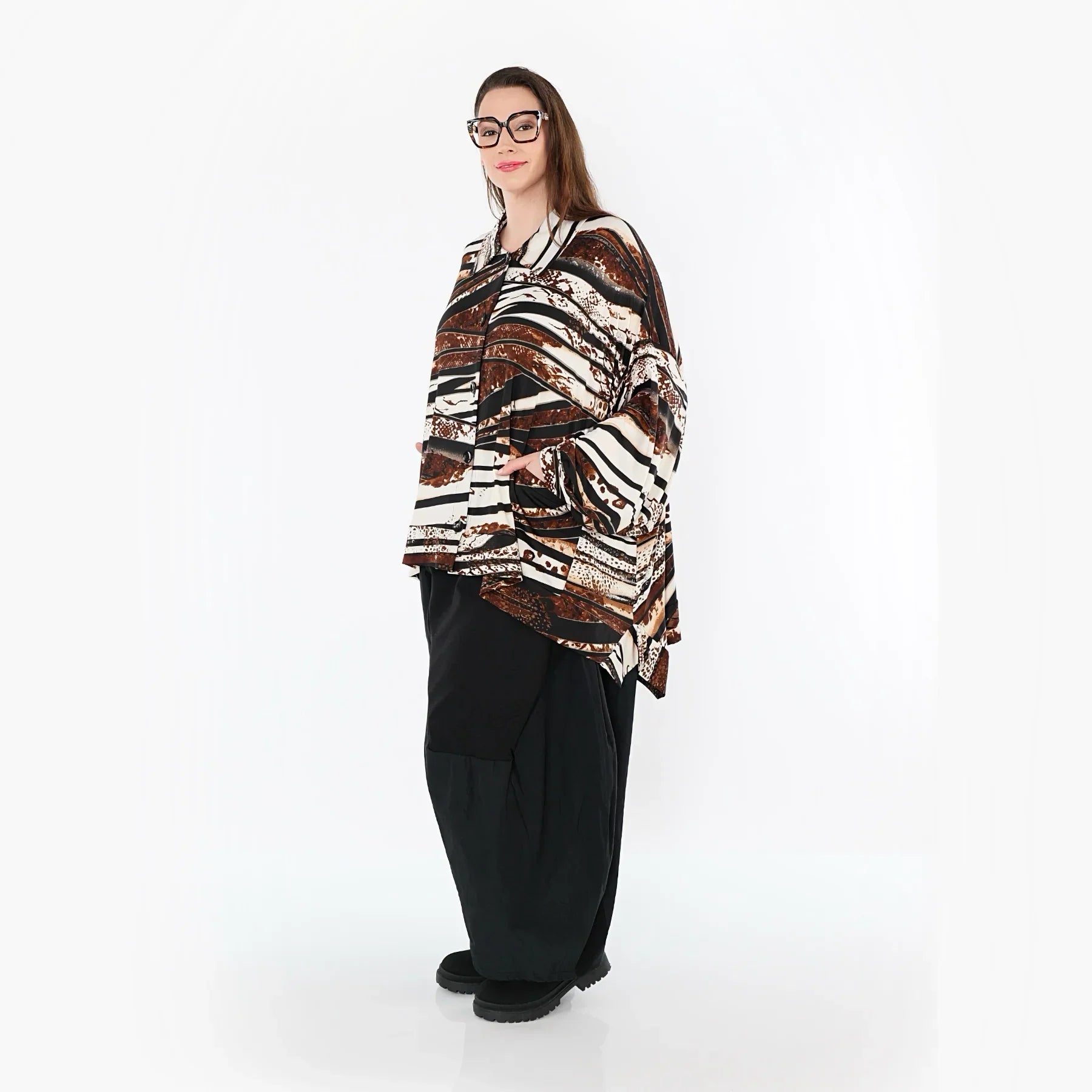 AKH Fashion 7132 Blouse, Black-Brown-White