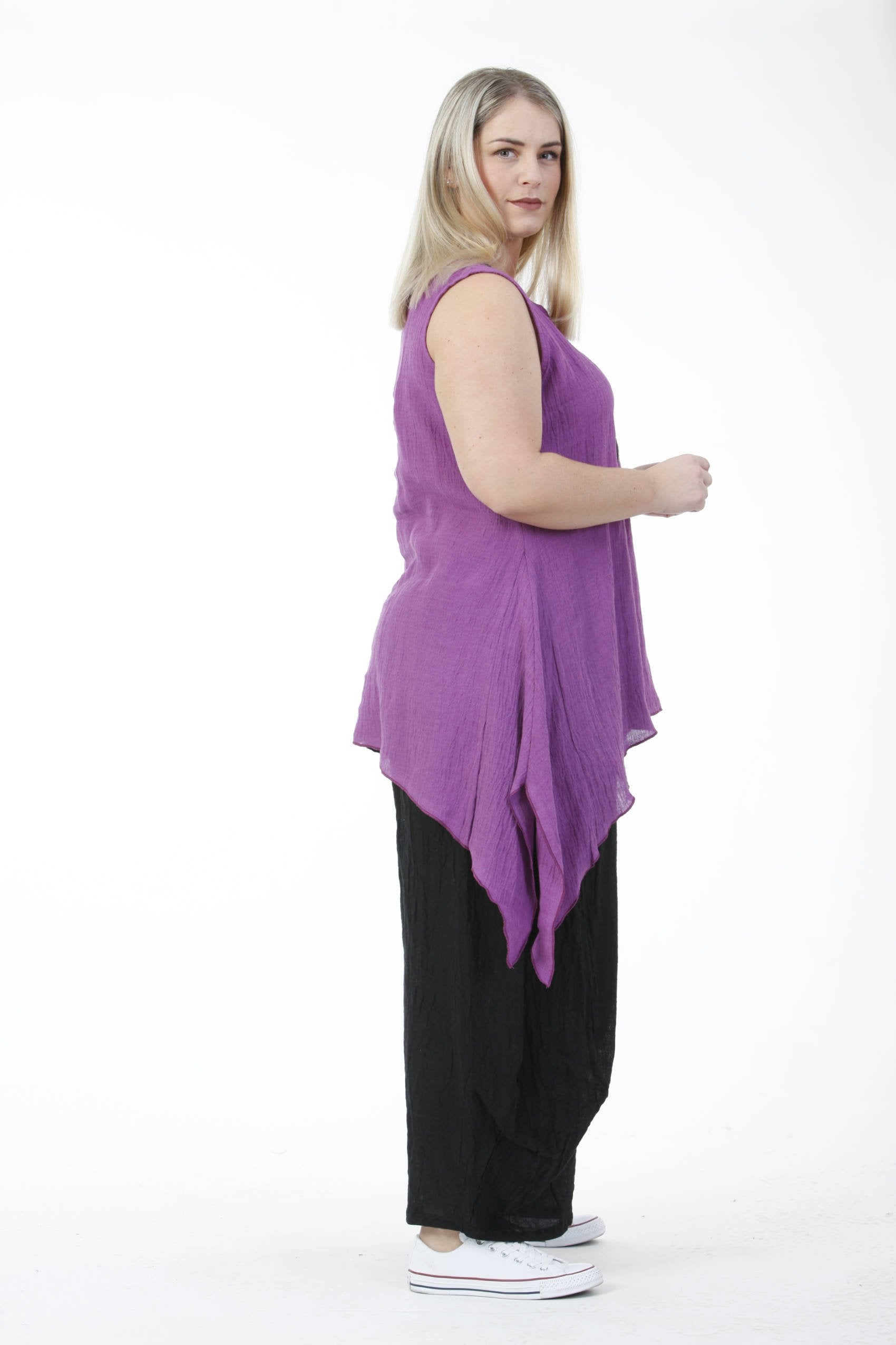 Sommer Top in A-Form aus er Leinen Qualität, Leinen-Crush in Lila